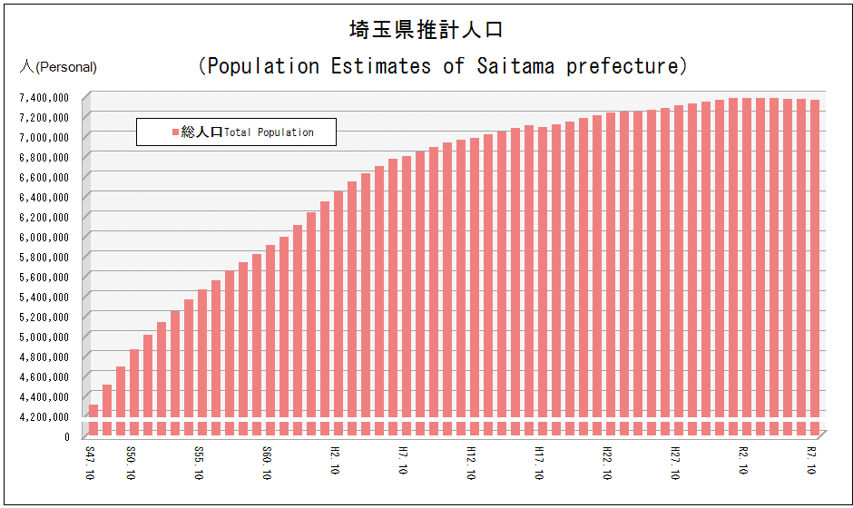 昭和34年~令和7年10月現在の県の各年人口がわかります。(各年1月、4月、7月及び10月の1日現在)