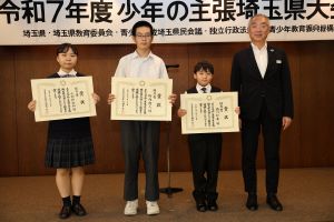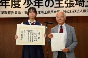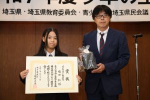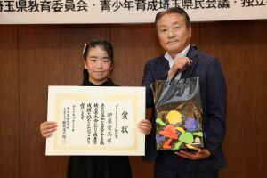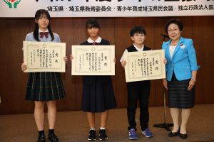 • 最優秀賞【知事賞】は、小学生の部が加須市立大利根東小学校の安藤 颯佑さん、中学生の部が草加市立谷塚中学校の池田 実花さん、高校生・一般の部が西武学園文理高等学校の大潟 佳澄さんに決定しました。