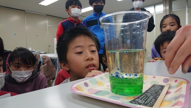小学生を対象に、人工竜巻づくりや静電気を使ったゲーム、光るスライムづくりを行いました。