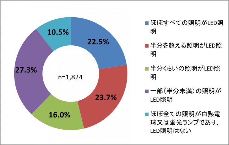 →「一部(半分未満)の照明がLED照明」が2割半ば超(27.3%)