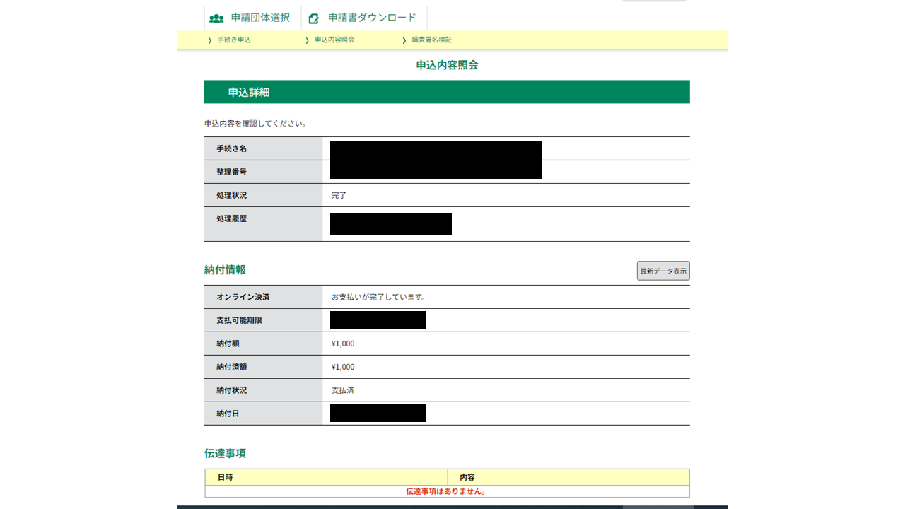 なお、電子納付時に領収書は発行されません。確定申告等へは、申込内容照会画面を印刷又はPDFとして出力等したもの(PNG:80KB)(別ウィンドウで開きます)を代用してください。