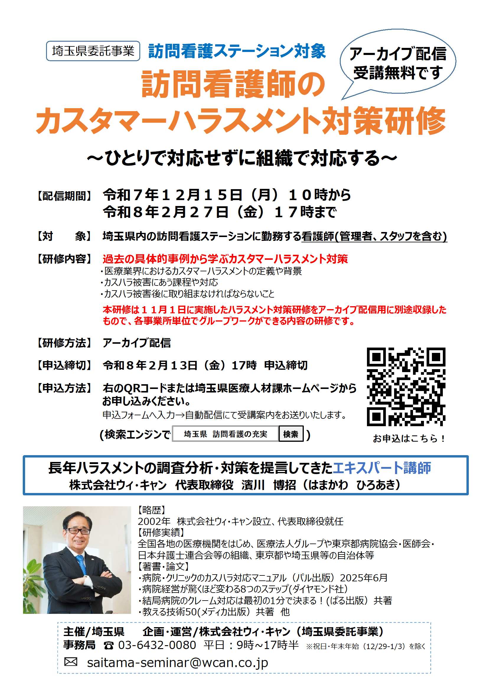 【対 象】埼玉県内にある訪問看護ステーションに勤務する看護師(管理者・スタッフを含む)