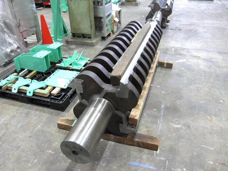 脱水機を組み立てている様子 洗浄粉砕機のローター部分