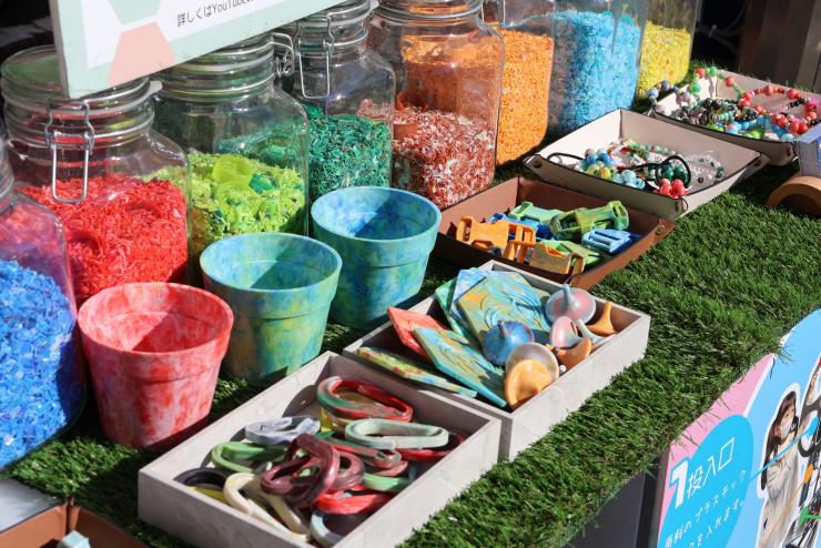 2024年に「SDGs事業部」を作り、親子向けのアップサイクル体験イベントを各所で開催しています。累計参加者は約2,000名、ペットボトルキャップを粉砕・加熱・成形して、コマや鉢、ビーズなどを作ります。2025年にはECサイト「Nihon CIM Upcycle Shop(日本シームアップサイクルショップ)」(https://nihoncim.base.shop)を開設し、体験イベントで生まれた雑貨をオンラインで販売しています。他に、埼玉県庁や浦和レッズのイベントでの「サーキュラーエコノミー体験」や小学校等への出前授業なども行っています。
