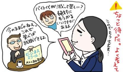 収入や就職など、将来への不安につけ込み、不要な契約を迫る悪質勧誘にご注意ください。