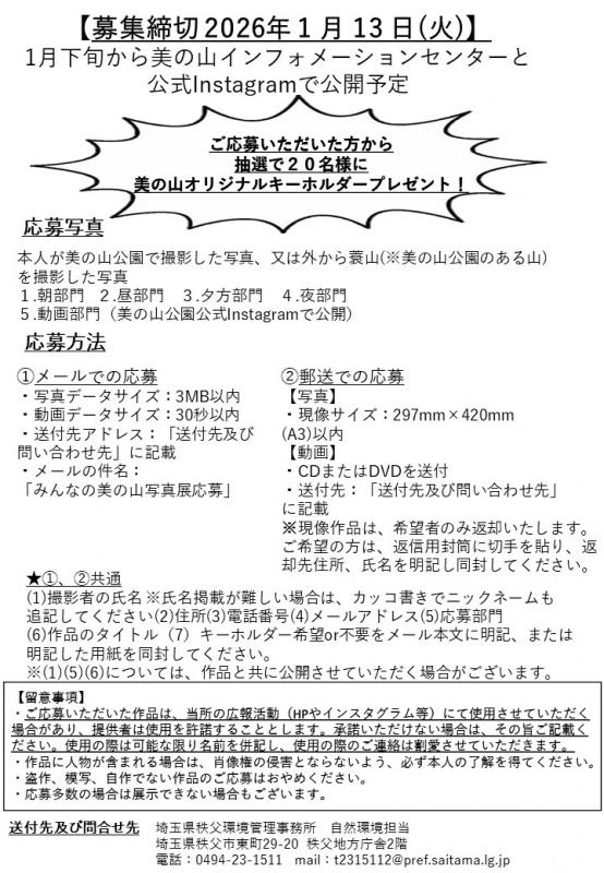【送付先住所】:埼玉県秩父環境管理事務所   自然環境担当