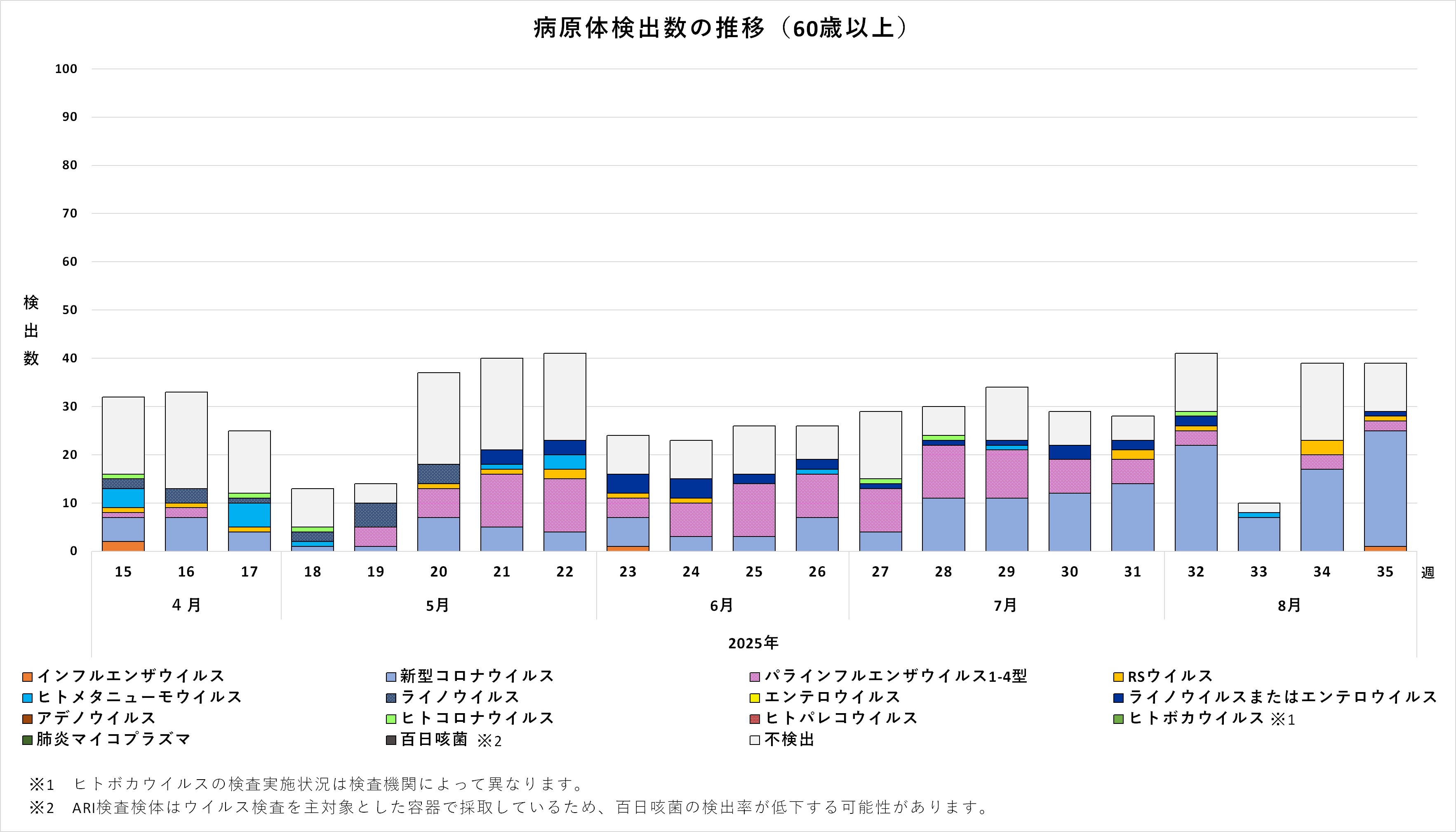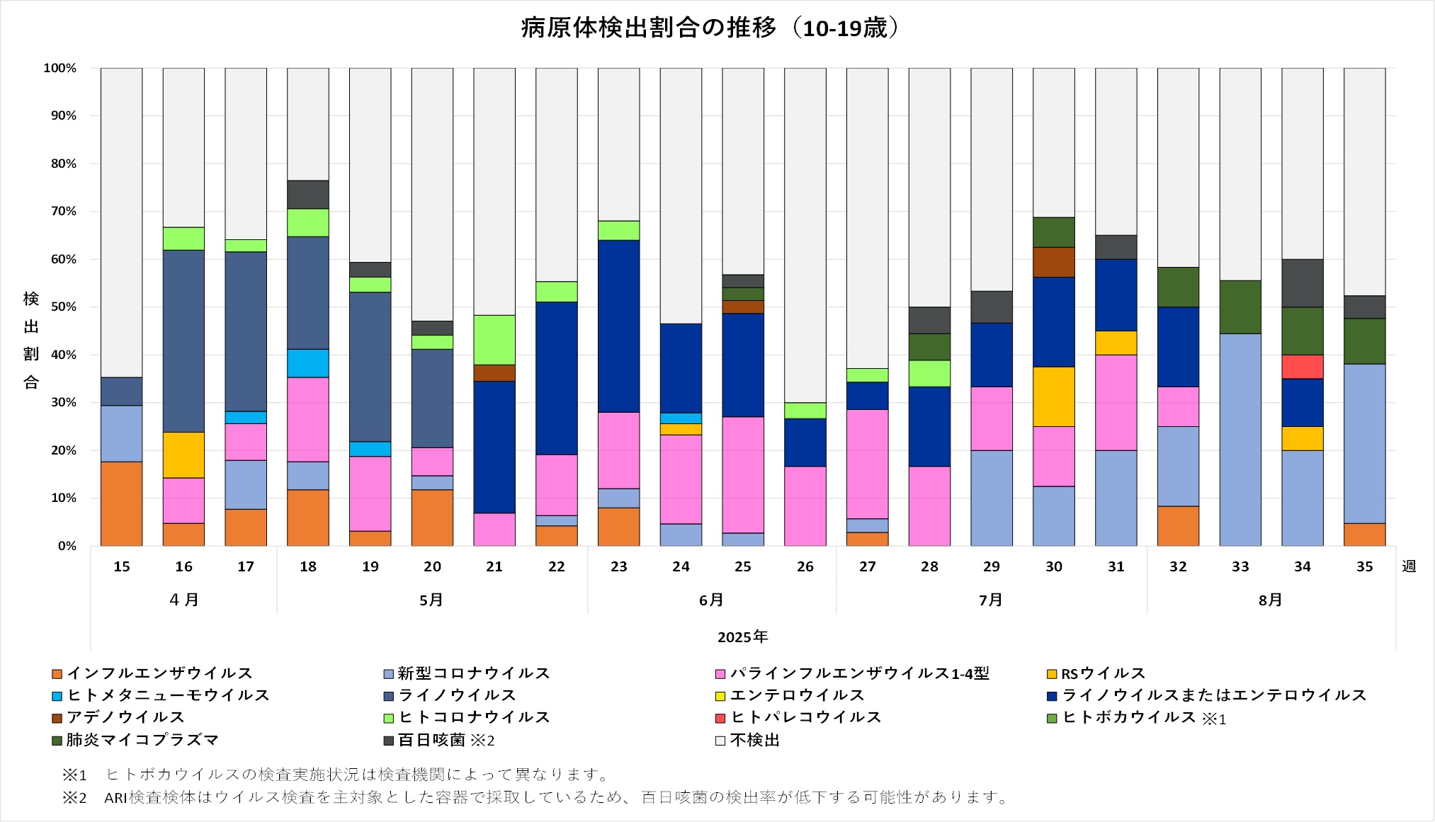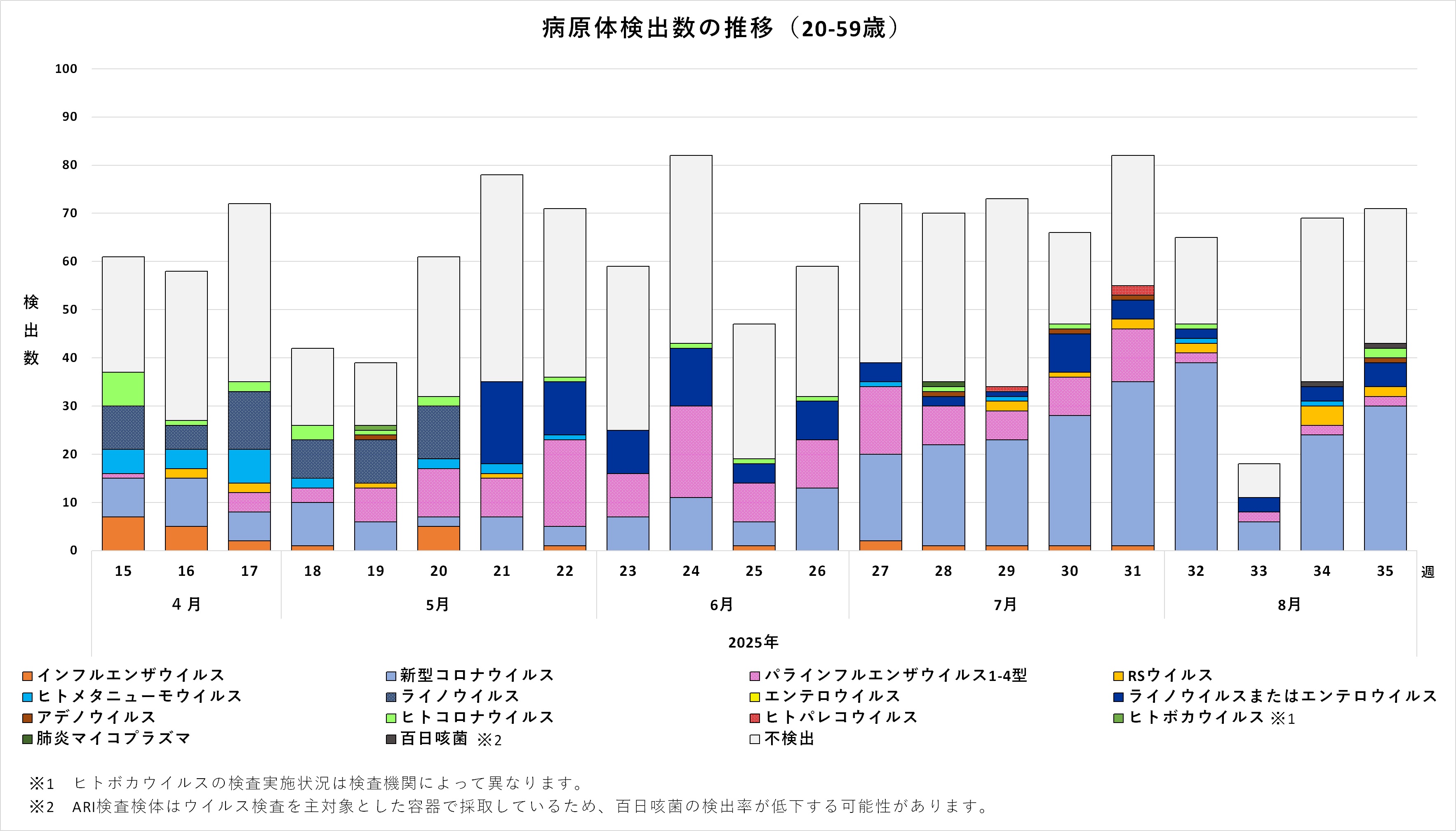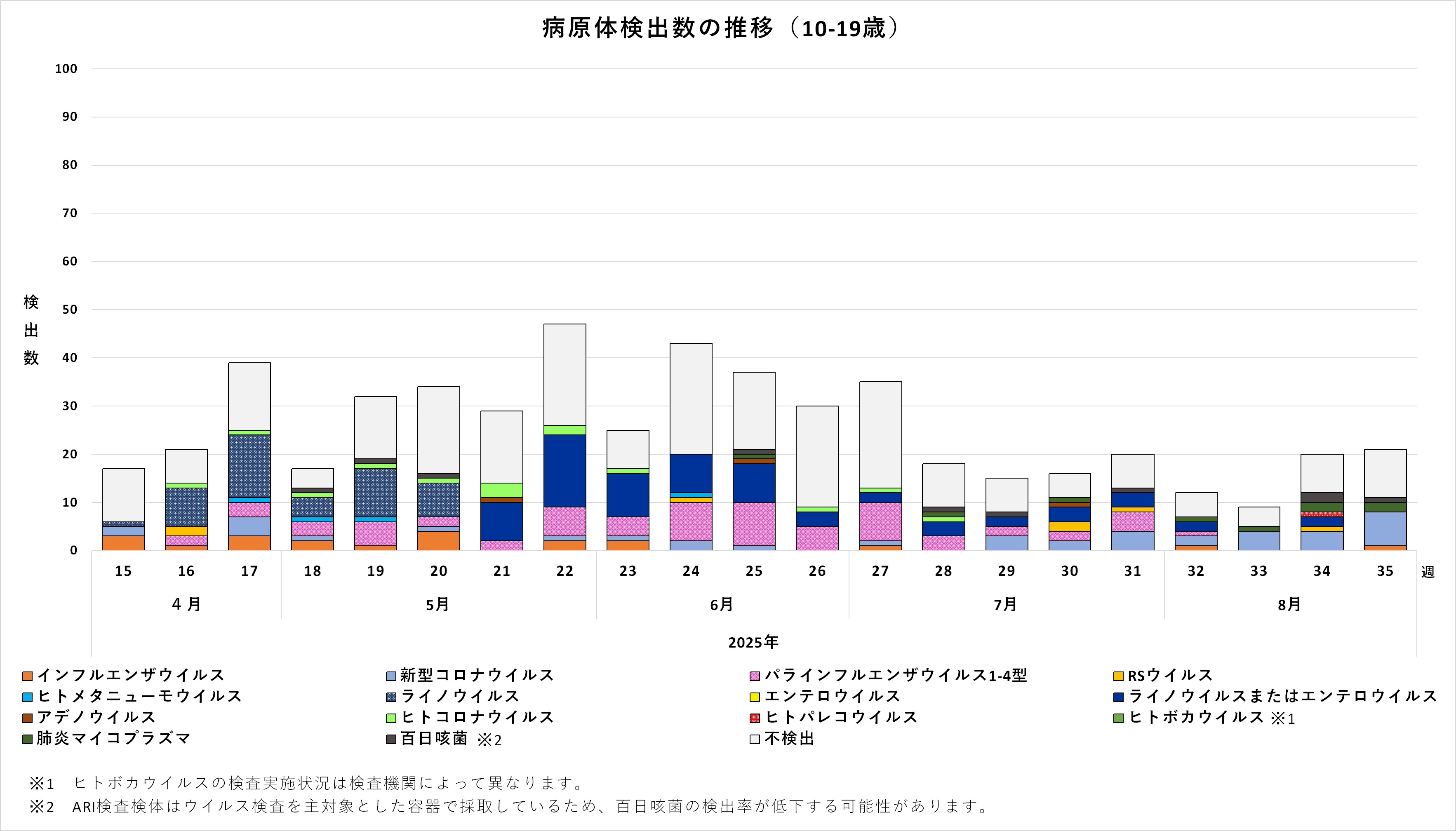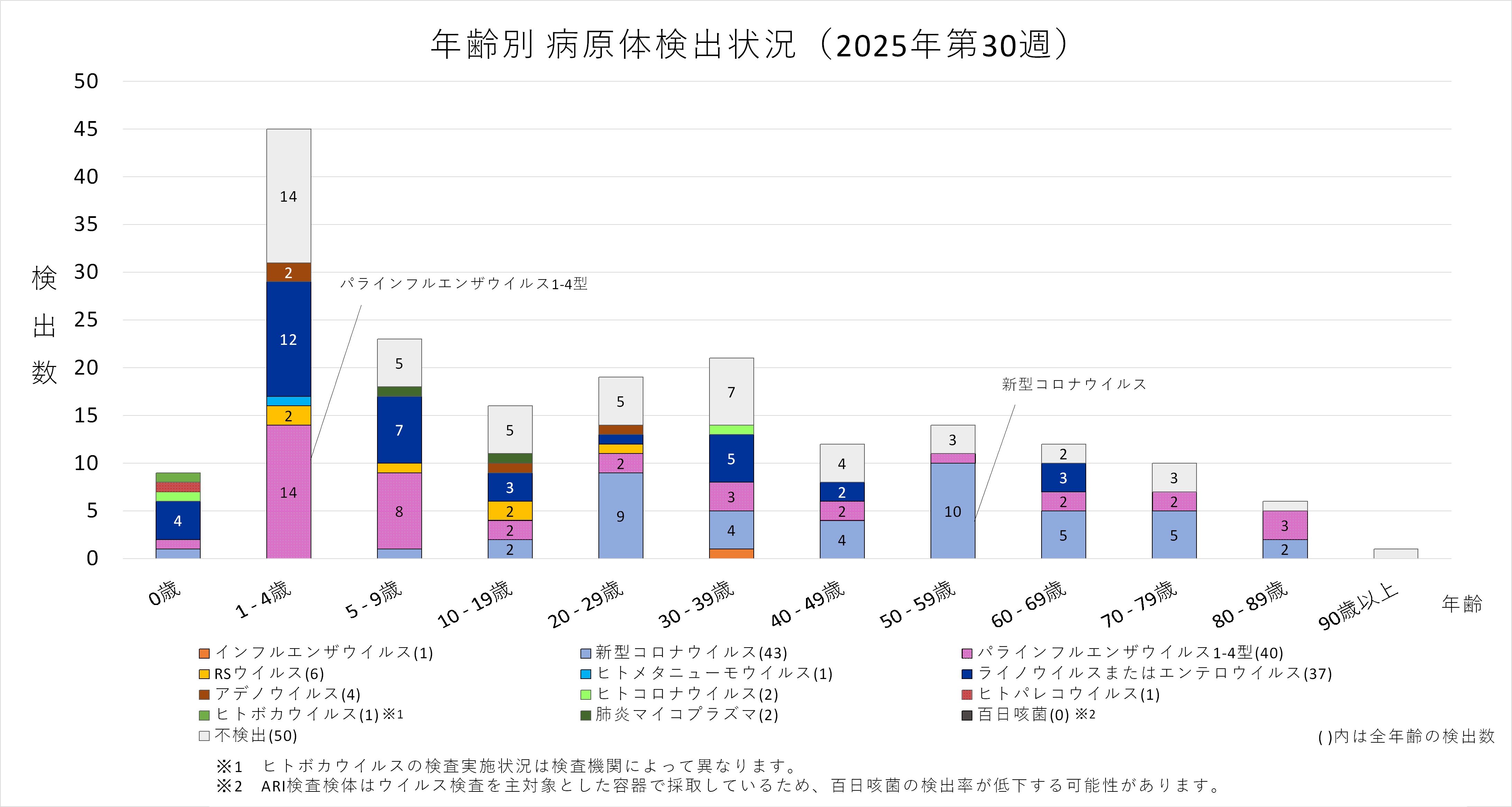 トップページ > 県政情報・統計 > 県概要 > 組織案内 > 保健医療部 > 保健医療部の地域機関 > 衛生研究所 > 感染症情報センター > かぜ様症状の原因ウイルスの流行状況(急性呼吸器感染症(ARI)病原体サーベイランス)
