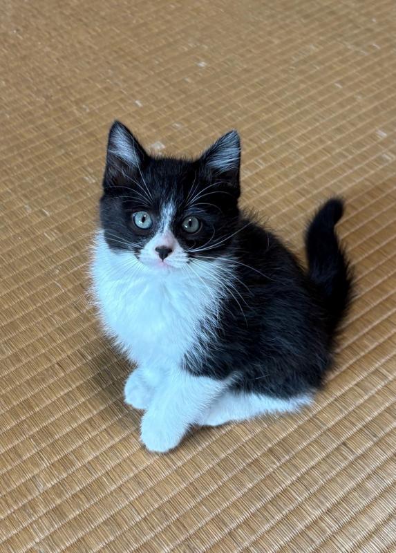 穏やかでのんびりした性格で、ごはんの時スリスリ甘えてきます。ぽっちゃり体型とちょび髭がチャームポイント。4種混合ワクチン1回接種済み。耳先カットあり。 |
