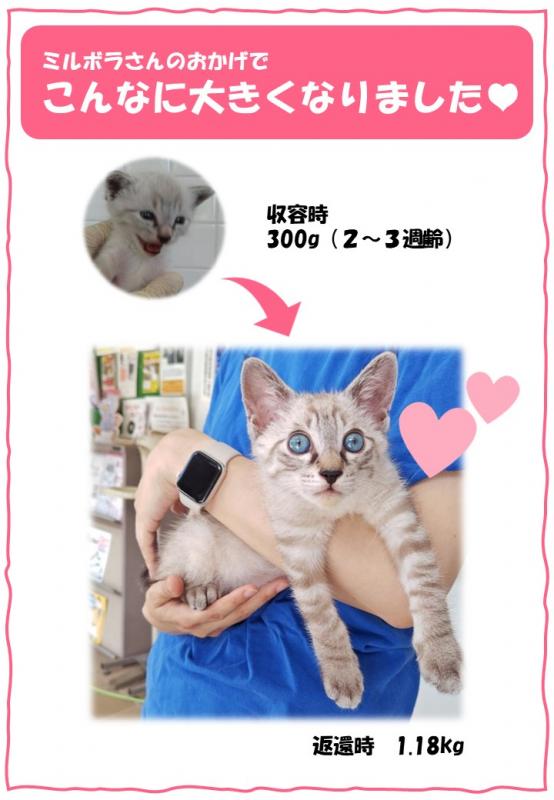 子猫がすくすく育ってくれたことが一番嬉しかったです。