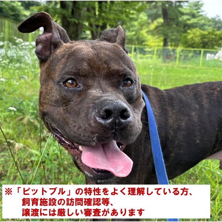 見た目は怖そうですが、とっても甘えん坊なキャビンくん。 他の犬との相性にも注意が必要なので、この子だけの1頭飼いをお願いします。 現在トイレトレーニング中で、日々頑張っています! 体重:28kg ピットブルの特性上、譲渡には厳しい審査があります。