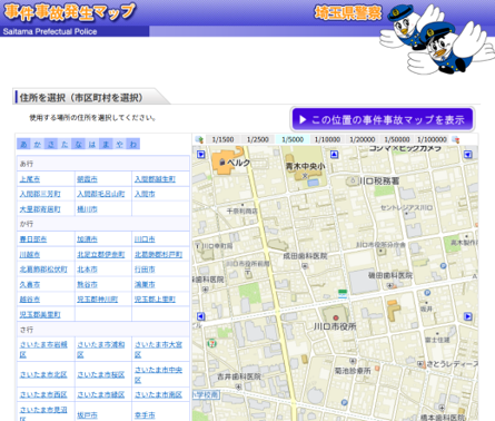 県内の犯罪発生状況及び交通事故発生状況をマップにして情報提供しています。
