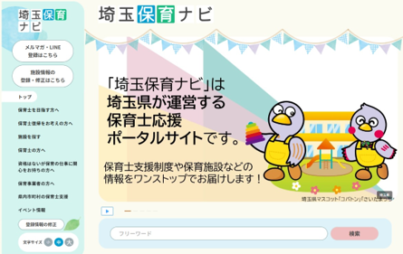 埼玉県内の保育施設の情報や保育士等を対象とした就職イベント、助成金、研修情報などをお届けします。