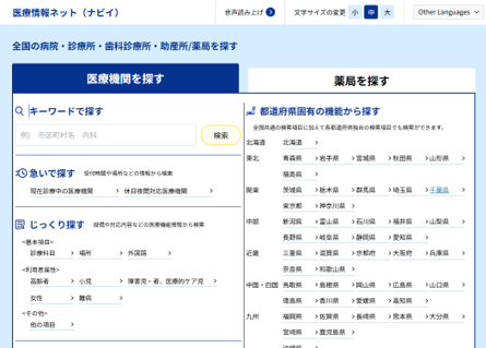 県内の病院・診療所・歯科・薬局の診療科目、診療時間、対応可能な医療等を検索できるポータルです。