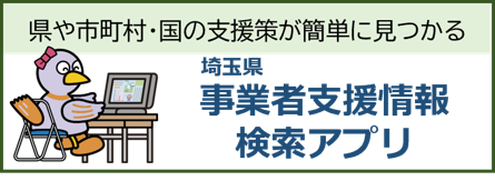 埼玉県や県内市町村、国が提供する補助金などの支援情報をワンストップで検索できます。