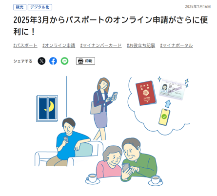 デジタル庁が提供するマイナポータルから、マイナンバーカードを利用してパスポートを申請することができるサービスです。
